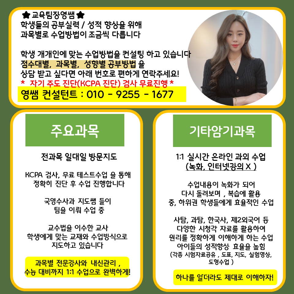 | 강남구 중학과외 자곡동 고등국어과외 수시 내신 정시 입시컨설팅 전문 (0) | 2024.01.29 |